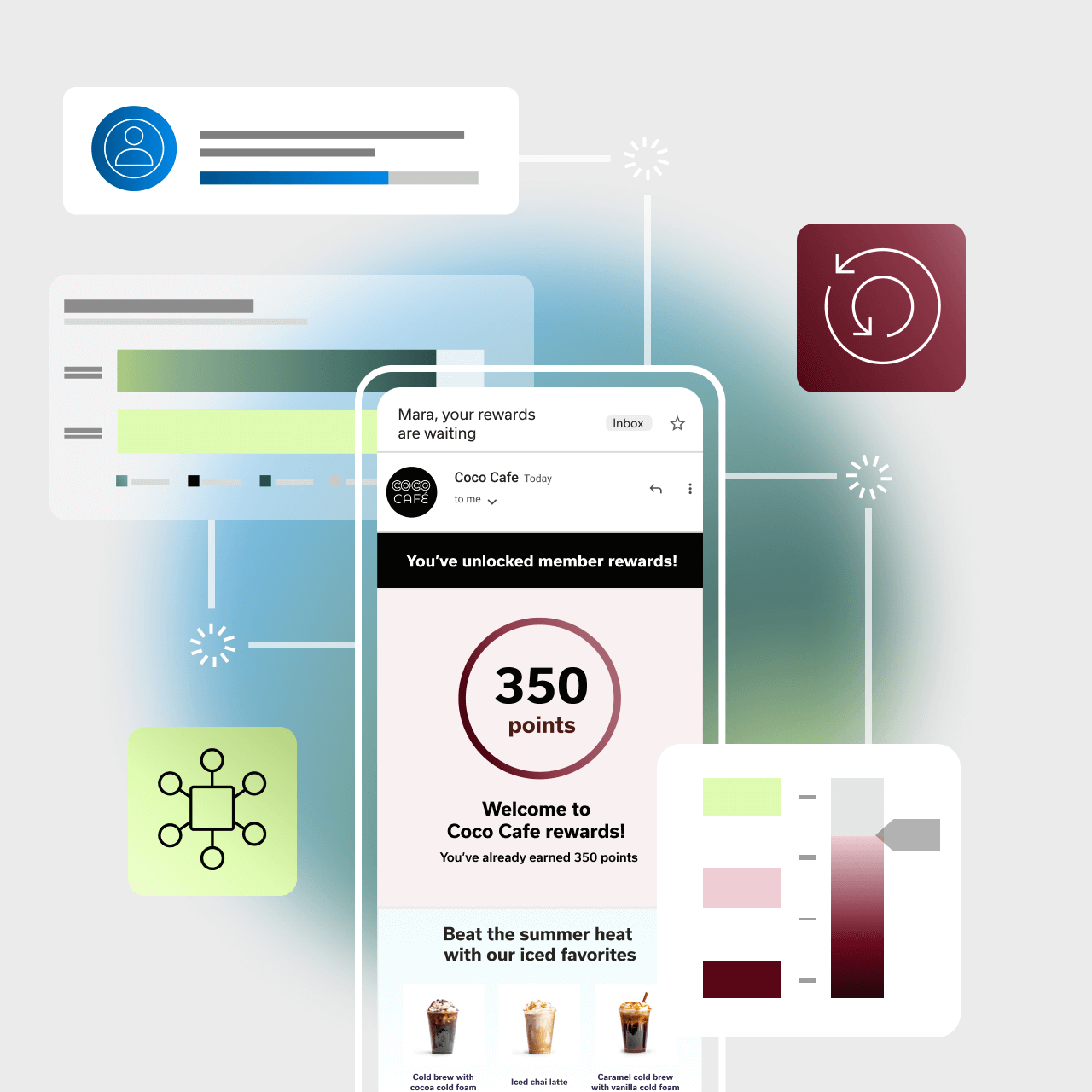 Under a tight deadline, I created a completely bespoke set of brand illustrations for the website that set the tone for modern, elevated look and feel. I also conceptualized and executed on a new aesthetic for our product graphics and icons. My visual design work on the website is now being cross-functionally implemented throughout our brand's design system of events, decks, and other marketing content, providing a fresh new direction for translating Marigold's look and feel.